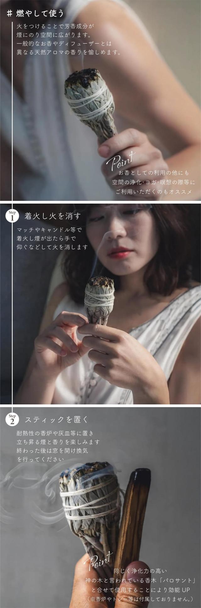 | 素 材 | カルフォルニア産オーガニックホワイトセージ |