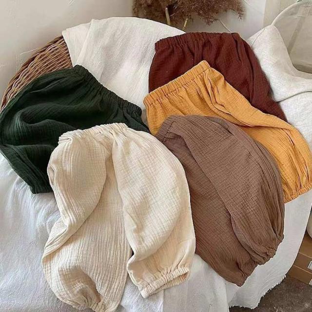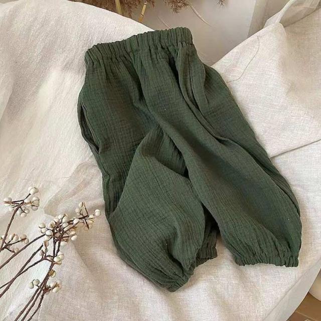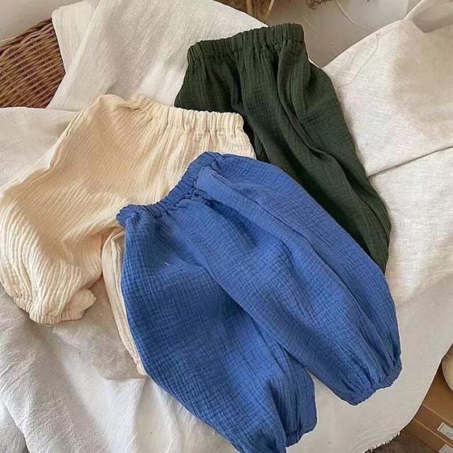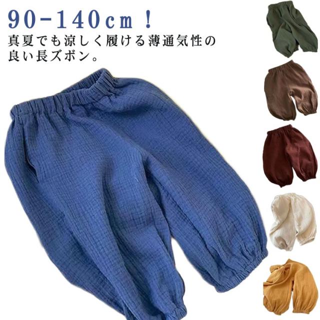 長ズボン カジュアル サルエルパンツ ロングパンツ 女の子 虫刺され防止 裾ゴム 男の子 子供服 春 綿 涼しいパンツ 夏用 ガーゼ キッズ 子供 ベビー コットン 無地 虫よけパンツ