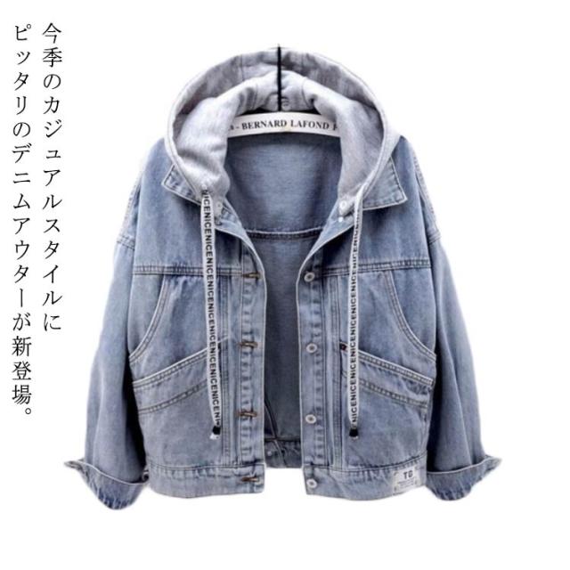 秋アウター デニムジャケット レディース ショート丈ジャケット Gジャン フード付きデニムジャケット ショート 春服 秋服 カジュアル レイヤード おしゃれ ゆったり