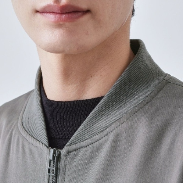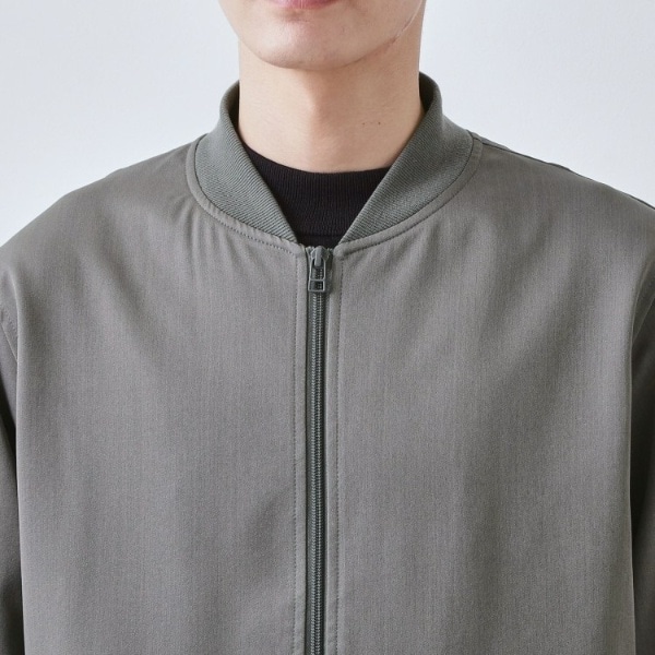 上品な表情の素材を使用した、きれいめ仕上げのリブブルゾン。