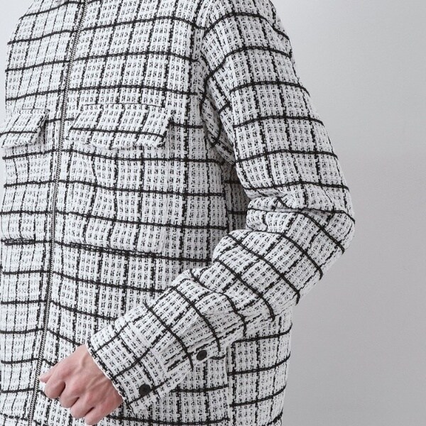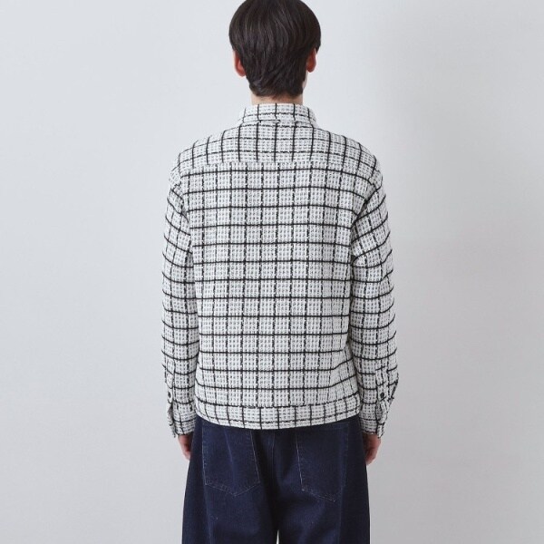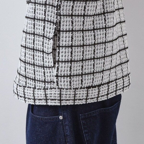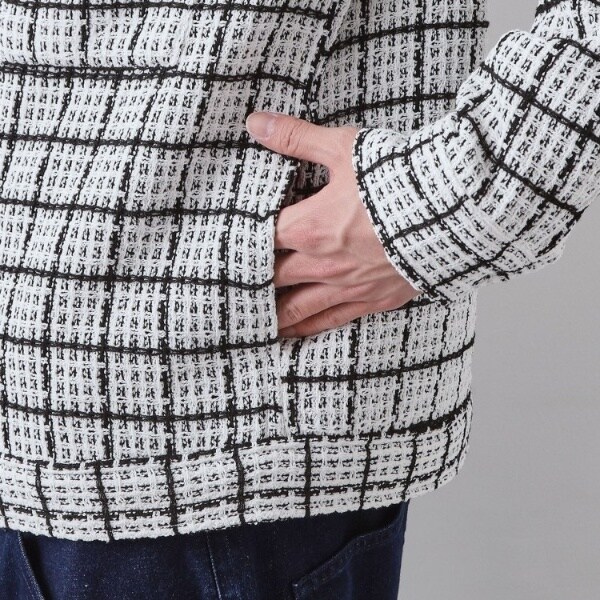 モノトーン配色が上品で、羽織るだけでスタイリングを引き締めてくれる一着です。