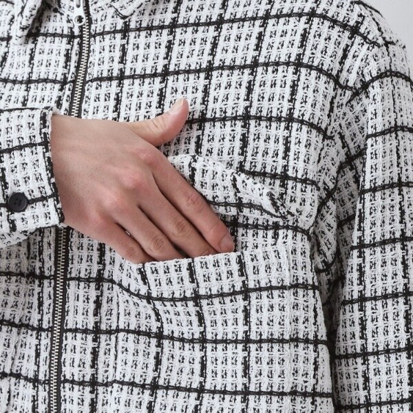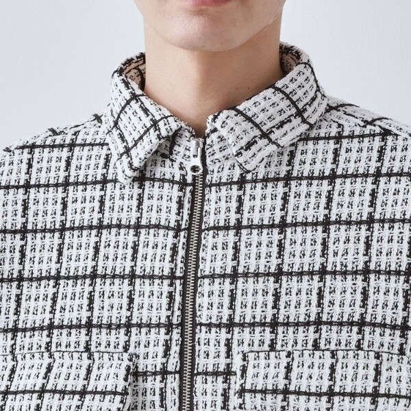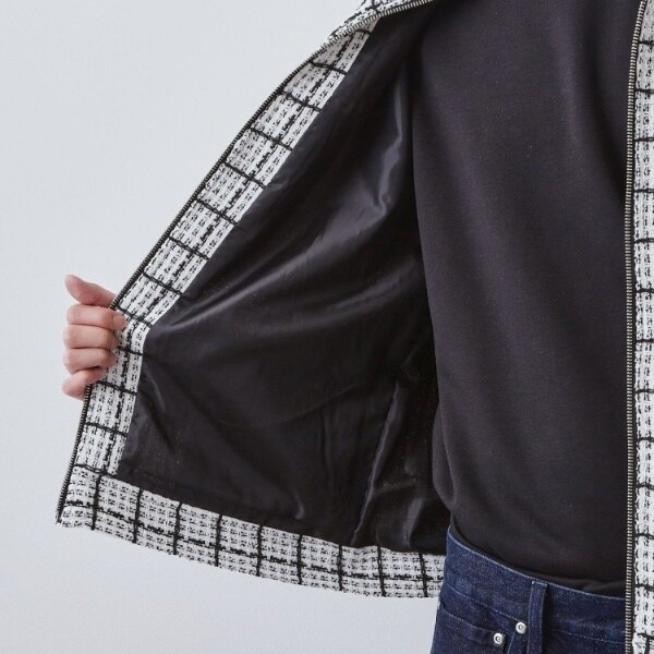 クラシカルなデザインを、表情のあるツィード素材で仕上げた大人顔ブルゾン。