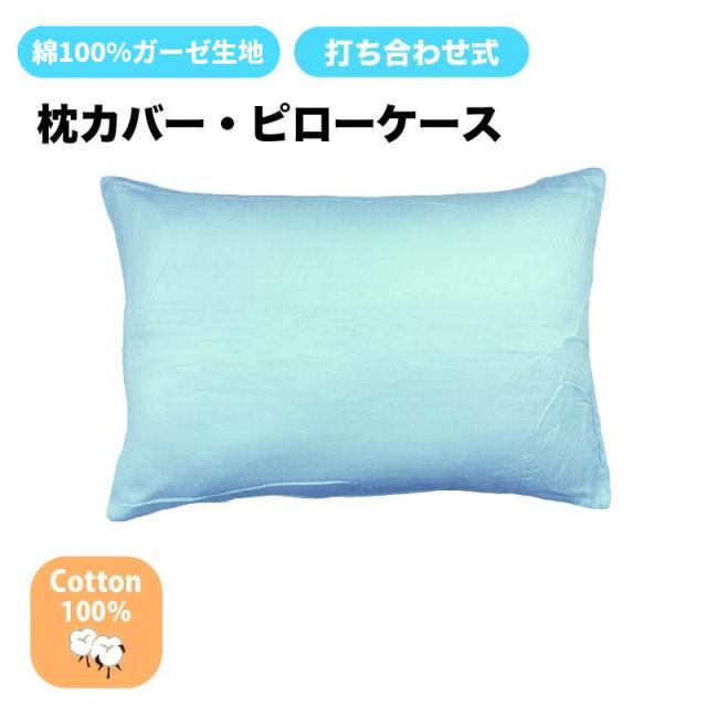 枕カバー ガーゼ 綿100% 35×50cm コットン 打合せ式 かぶせ式 ファスナーなし 洗える さわやか ブルー 水色 まくら ピローケース