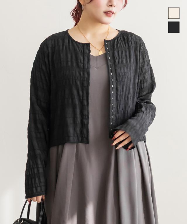 | 3Lサイズを着用してちょうどいいサイズ感でした。トップスですがピタッとしすぎず程よくゆとりを持って着られました。軽ろやかな生地でストレスフリーに着られました!フロントのホックが今っぽいデザインで、縦のラインが強調出来て着やせして見えます!ネックラインも綺麗に開いていて、詰まった印象が無くすっきり見えするのが嬉しいです!生地がポコポコしていて、大人カジュアルにスタイリングできるデザインになっています◎丈感も絶妙でインしなくてもコーデしやすいのもポイントです!冬はインナーを着て重ね着したり、夏は冷房対策のカーデにも使えて、オールシーズン使えるトップスなのであると便利な1枚です! |