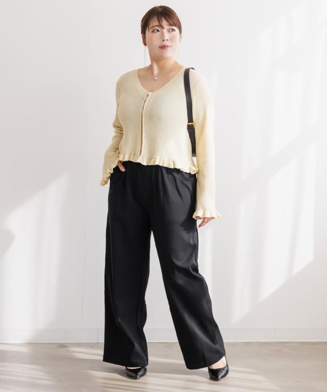 | 3Lサイズを着て、ちょうどいいサイズ感で楽に履けました!程よくワイドシルエットで、生地自体も伸びてお出かけやお仕事などよく動くシーンにもおすすめです◎ルーズめなフォルムで足のラインを拾いにくく、すっきりとしたストレートパンツなのでスタイルアップ効果も抜群です!シンプルなアイテムなので、どんなトップスでも相性良く着ていただけます♪ |