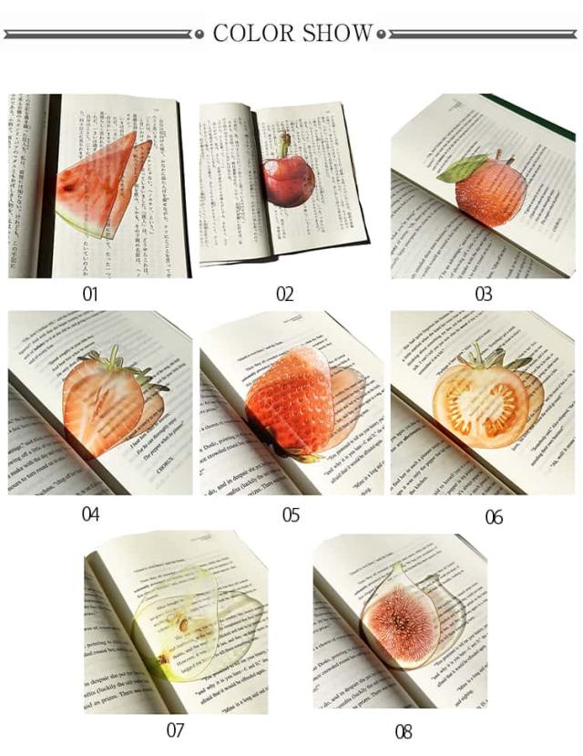 選べる2枚セット しおり ブックマーク 透明感 アクリル ブックマーカー かわいい フルーツ 栞 果物 おしゃれ クリア 読書 文房具 プレゼント 送料無料 りんご バナナ いちご プチギフト 景品 プレゼント