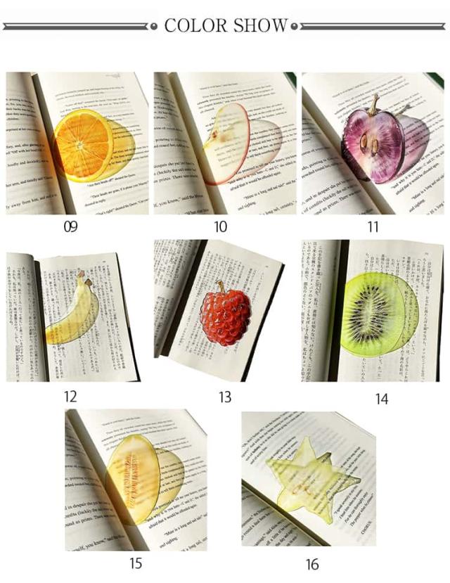 | 透き通るアクリル素材にフルーツモチーフをあしらった透明感あふれるブックマークです。 光を受けてきらっと映える可愛いデザインが読書の時間を彩ります。 軽くて丈夫なアクリル素材は使いやすく、手帳やノート、教科書にもなじみやすいです。 自分用にはもちろん本好きさんへのちょっとしたプレゼントやプチギフトにもぴったりな、おしゃれと実用性を兼ね備えたしおりです。 | |