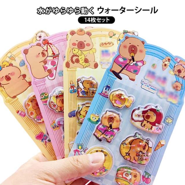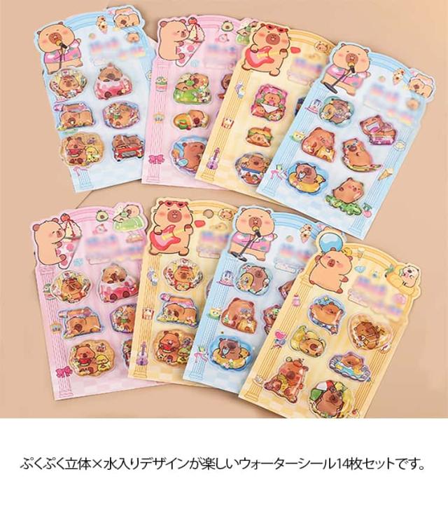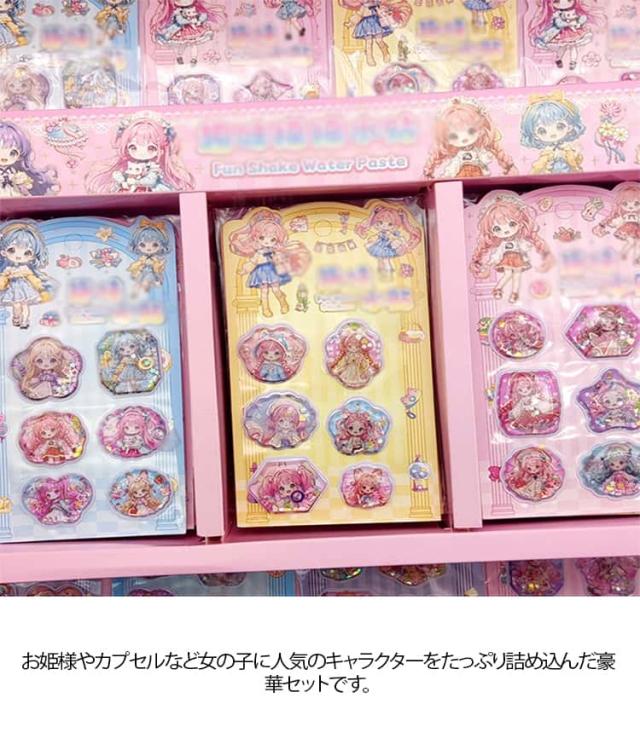 たっぷり楽しめる14枚セット ウォーターシール ぷくぷくシール 水シール ぷっくりシール シール帳 3D立体 女の子 かわいい カプセル お姫様 キラキラ スパンコール入り 水揺れシール 揺れるシール ご褒美シール 送料無料 シール帳 シール交換 シール集め