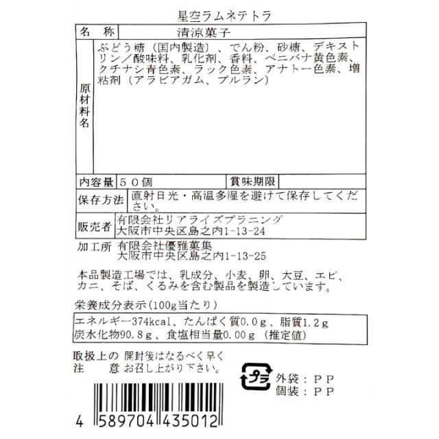 星空ラムネテトラ 4g×50個入り 小袋 個包装 星形 ラムネ 業務用