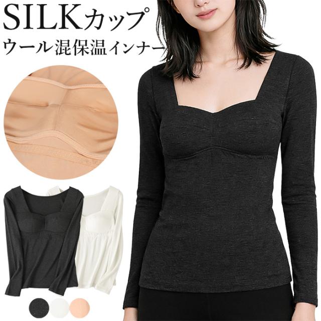 シルク ブラトップ 長袖 インナー レディース カップ付き あったか ノンワイヤー 肌着 レーヨン ストレッチ ノンワイヤー 快適 フィット 防寒 保温 吸湿 rr-071 プレゼント ギフト 母の日 父の日 敬老の日 バレンタイン ホワイトデー クリスマス