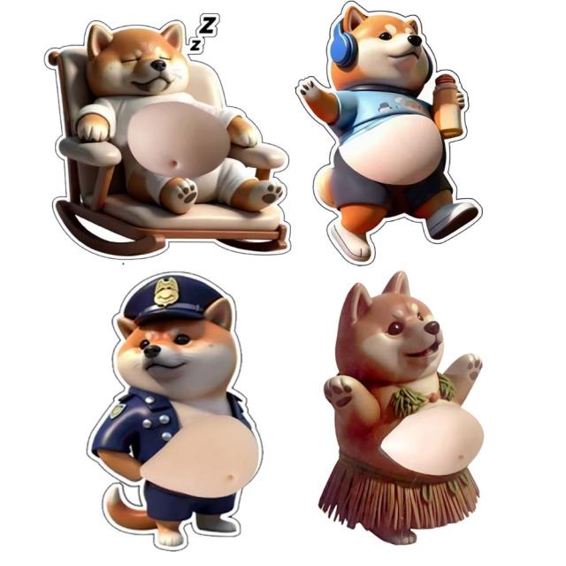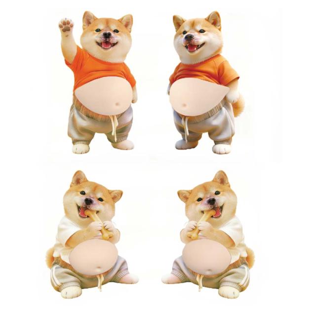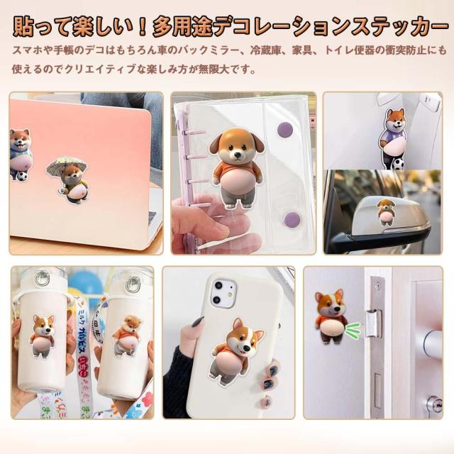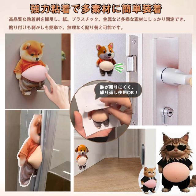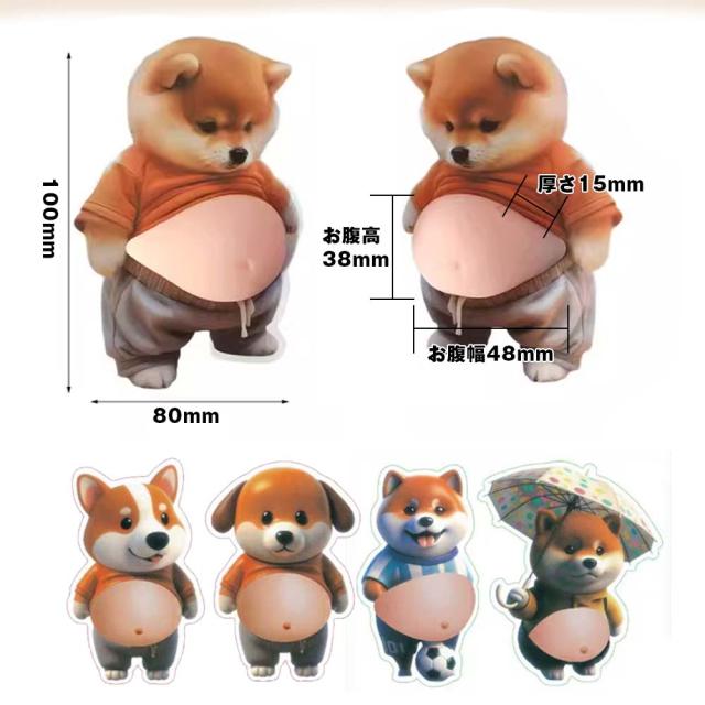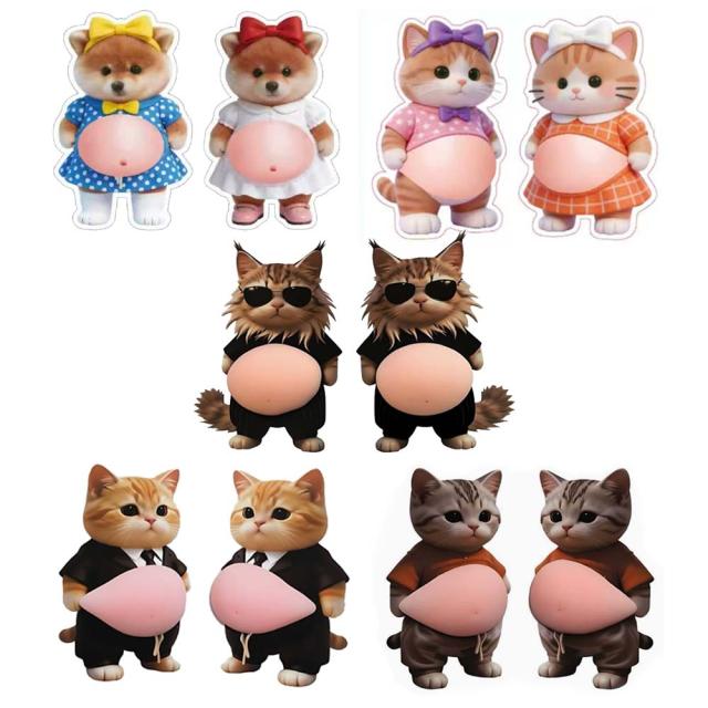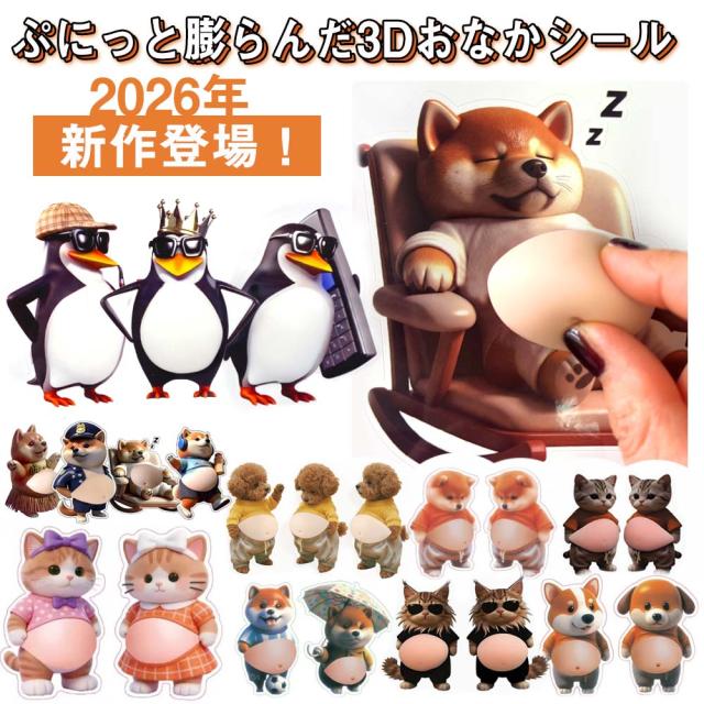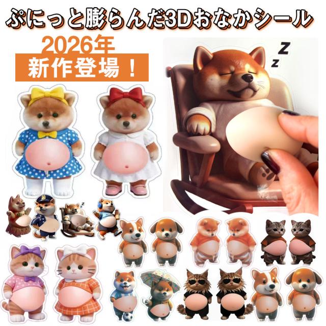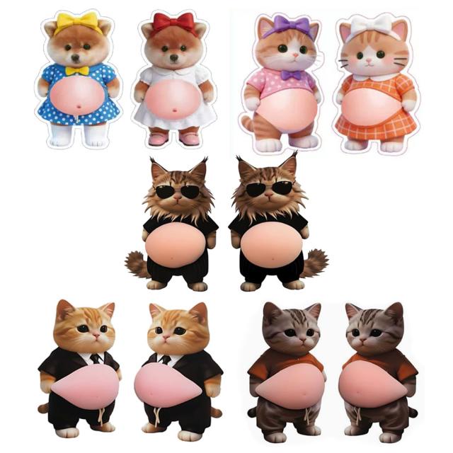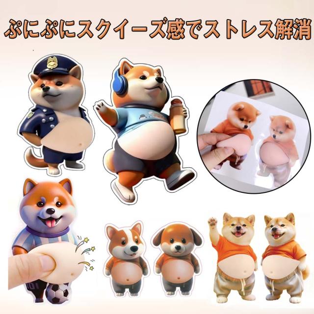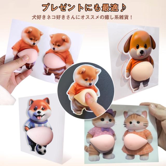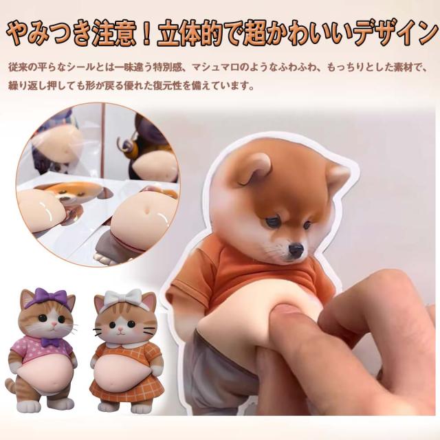 おなか 3Dシール デブイヌ ネコ 2/3ペア 柔らかい ぷにぷに ぷっくり もっちり スクイーズ DIY デコシール 癒しグッズ 立体ステッカー