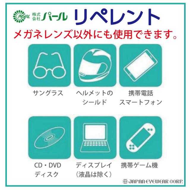 使用方法:レンズの両面に適量をスプレーし、一分ほどレンズになじませ半乾きの状態からティッシュで拭きあげます。
