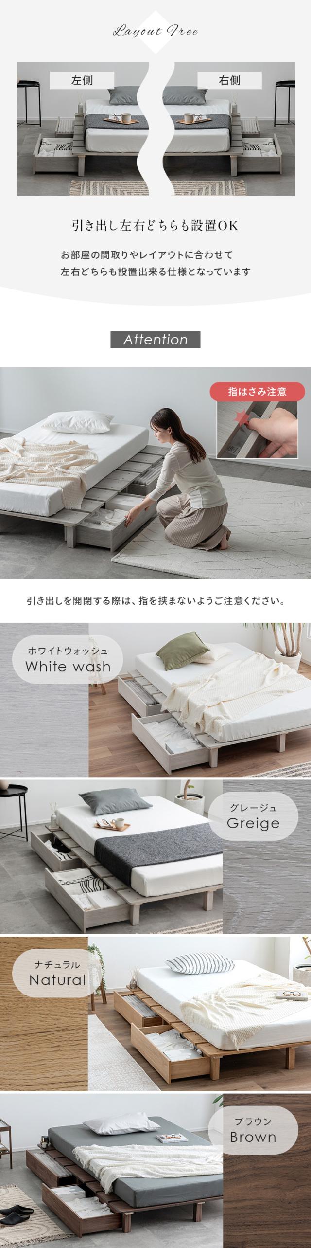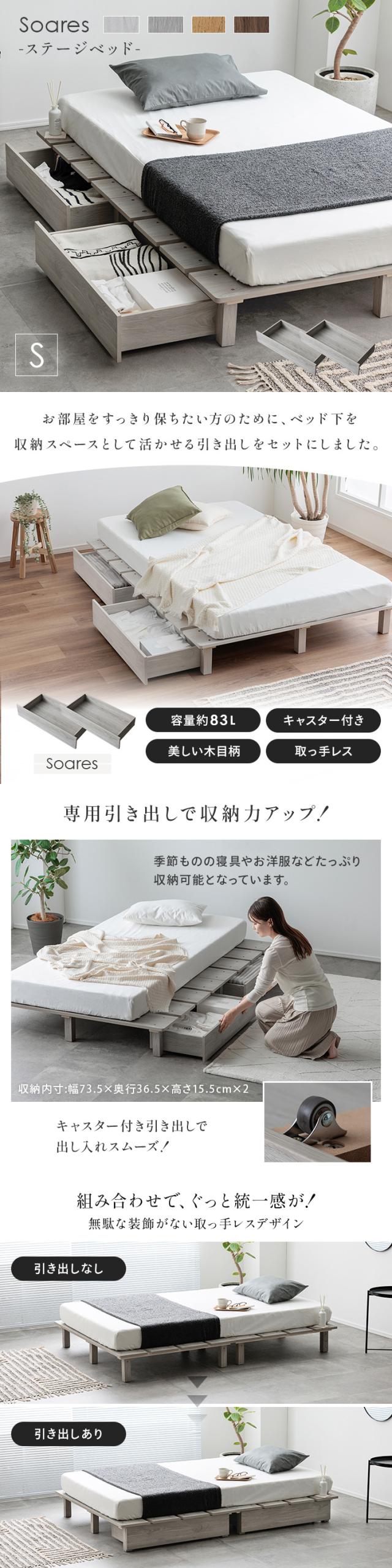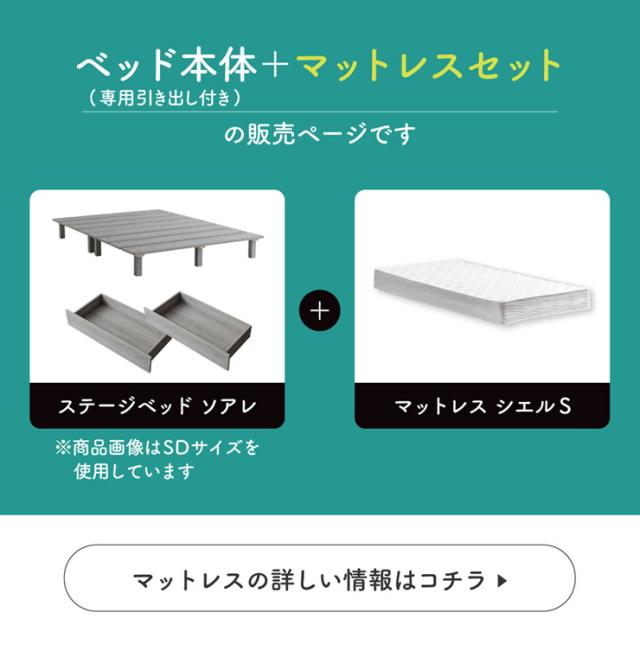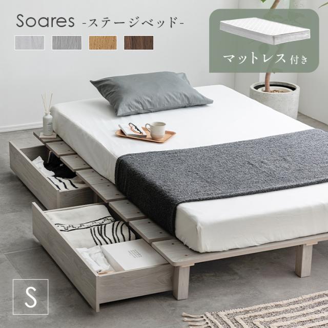 ベッドフレーム すのこベッド 幅120cm シングルベッド おしゃれ マットレスセット ステージベッド+専用引き出し 2杯セット Soares(ソアレ)+マットレス Ciel(シエル) 4色対応 すのこ ロータイプ 新生活