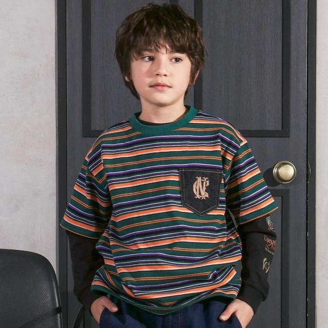 【10%OFF 送料無料 2026春夏 ジュニア 子供 男の子 女の子】nexchic(ネクシック) BeBe ロゴ入り長袖Tシャツ+マルチボーダー半袖Tシャツセット