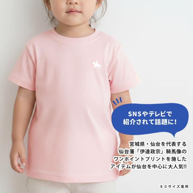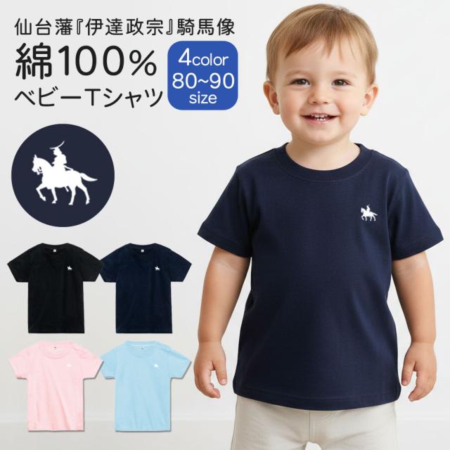 伊達政宗 ベビー Tシャツ 80 90 半袖 綿100% コットン トップス 赤ちゃん 男の子 女の子 ベビー服 キッズ 子供服 ワンポイント プリント スナップボタン付 シンプル 仙台 宮城 東北 騎馬像 馬 ご当地 グッズ お土産 (toms00103)