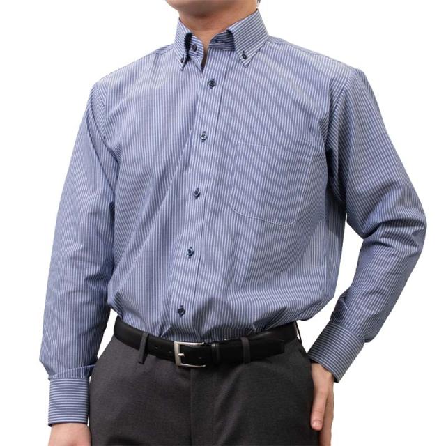 ワイシャツ メンズ 長袖 形態安定 ボタンダウン BLUE POOL ROAD ネイビー ストライプ【DMD451-355】