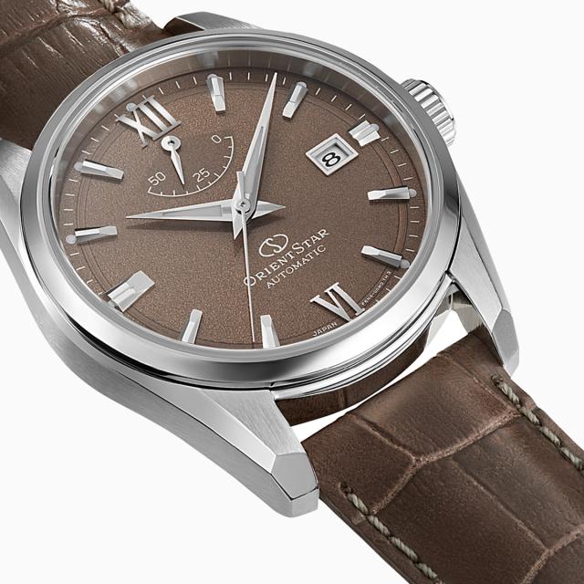 オン・オフを問わず使えるデザイン性で長く支持されてきた、オリエントスターの定番「コンテンポラリーデイト」。本モデルでは、その完成されたデザインをベースに、文字板の表情とディテールを現代的にアップデートしています。