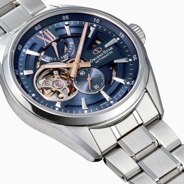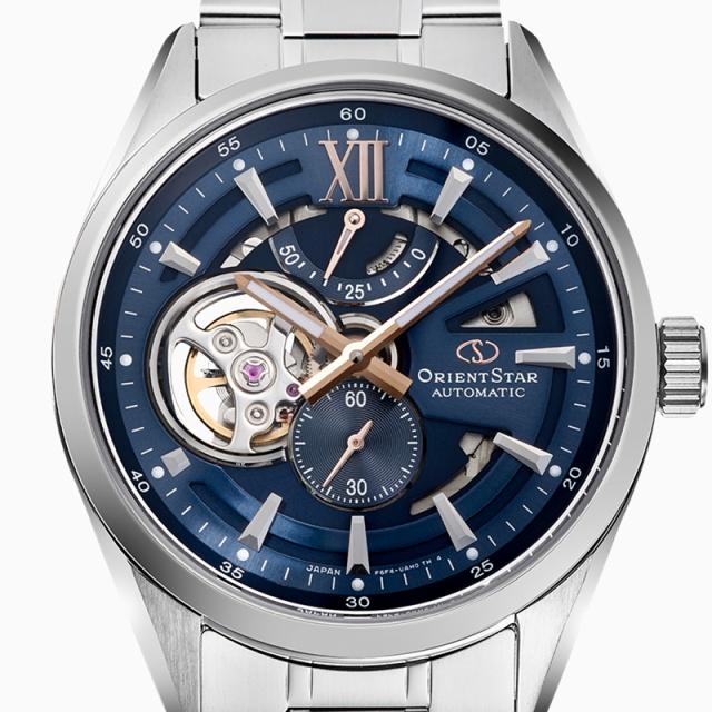 オリエントスター モダンスケルトンは、機械式時計の魅力を視覚的に楽しめるシリーズとして高い支持を集めてきたロングセラーモデルです。今回のモデルでは、文字板デザインを刷新し、オープンワークの面積を拡大。ムーブメントの動きをより立体的に感じられる、現代的なスケルトン表現へと進化しました。