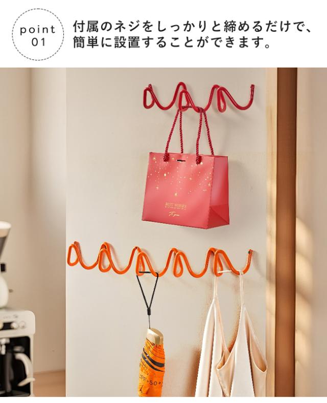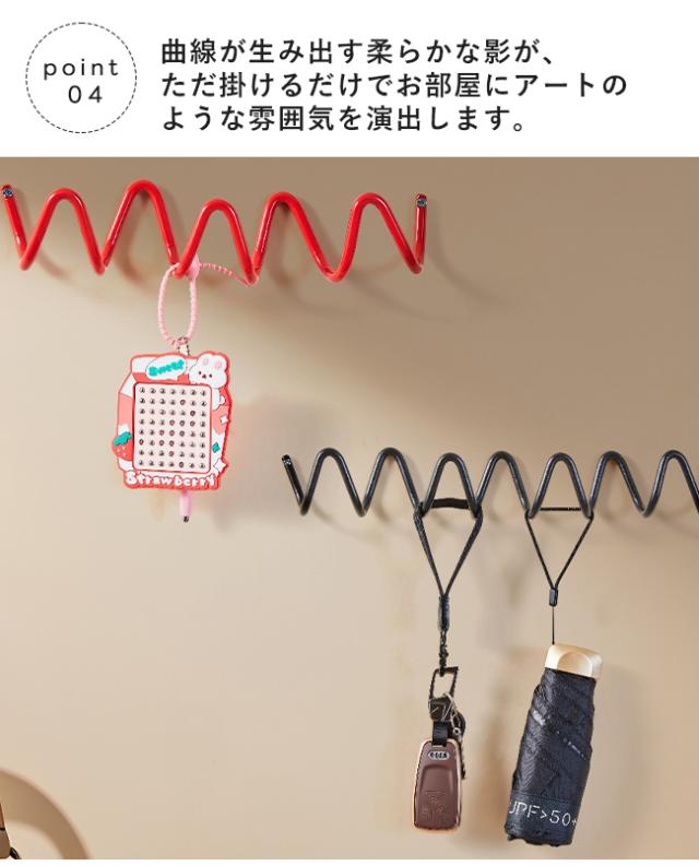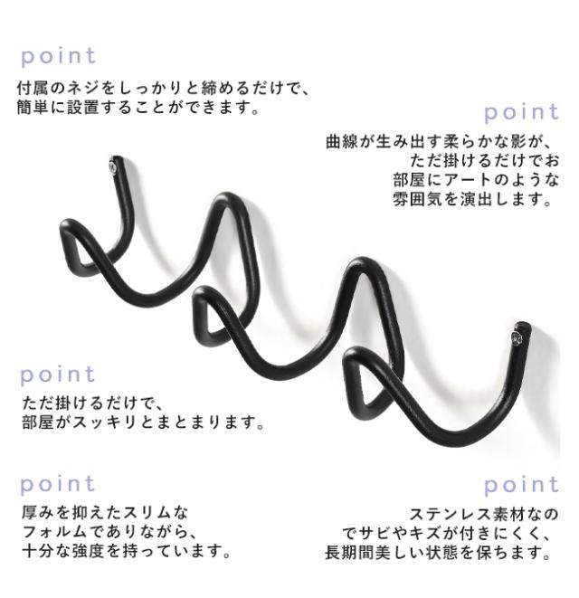 アイアンフック ウェーブ ウォールフック 壁掛け 収納 おしゃれ ウェーブホルダー コートラック 3連 5連 北欧風 モダン シンプル 玄関 リビング クローゼット 壁面収納 バッグ 帽子 コート 掛け スチール製