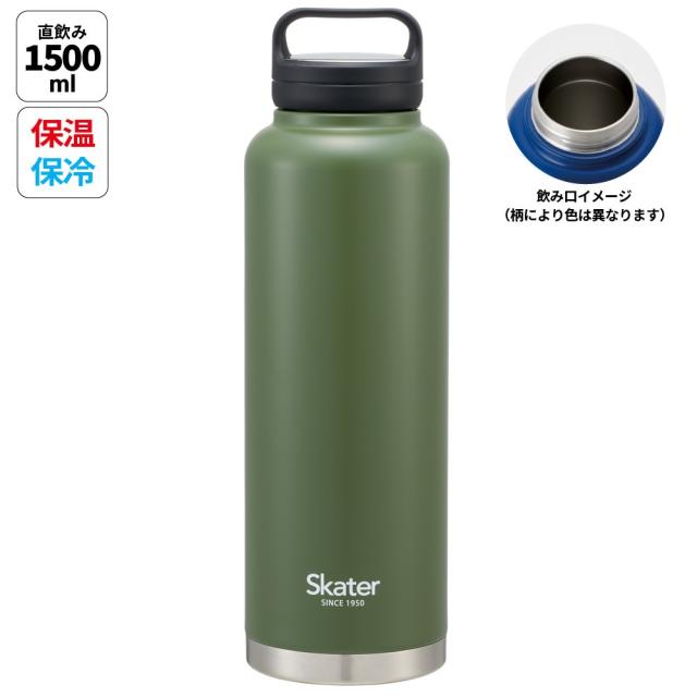 スケーター公式ECオリジナルカラー ステンレス マグボトル 水筒 1.5l 1500ml 保温 保冷 skater 1.5リットル 1.5 直飲み STSC15 オリーブ【ステンレスボトル ステンレス ボトル スクリューハンドル付き】