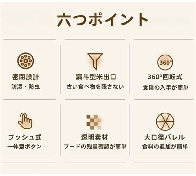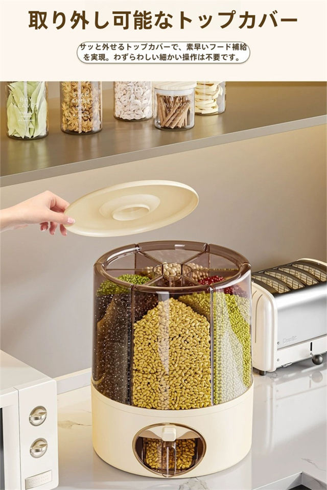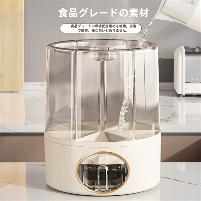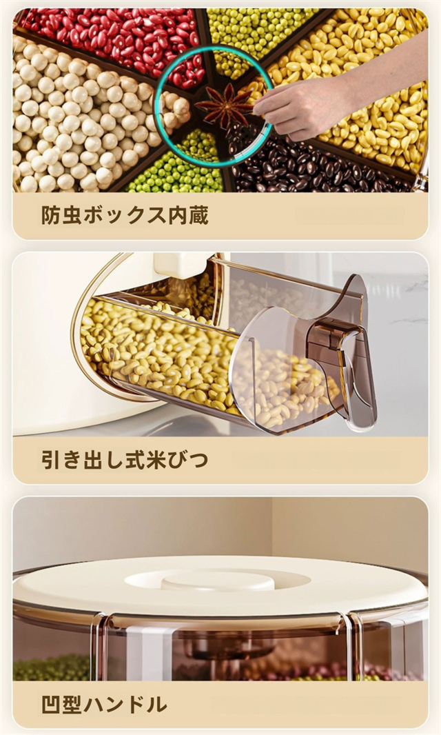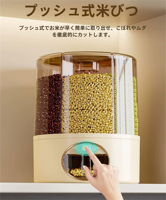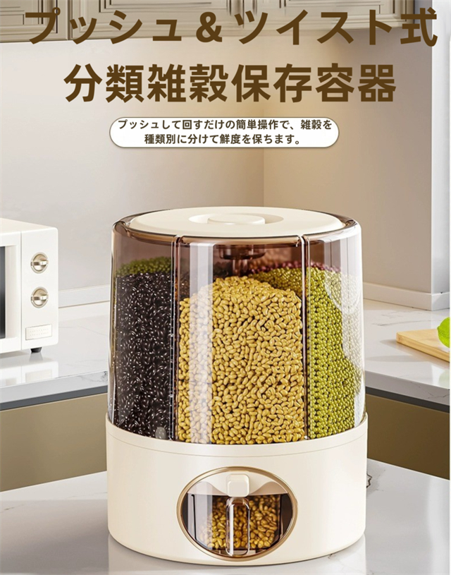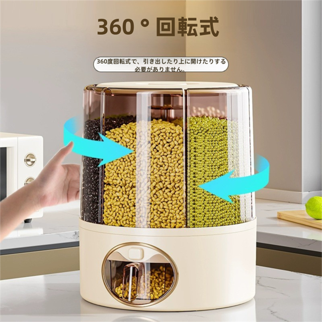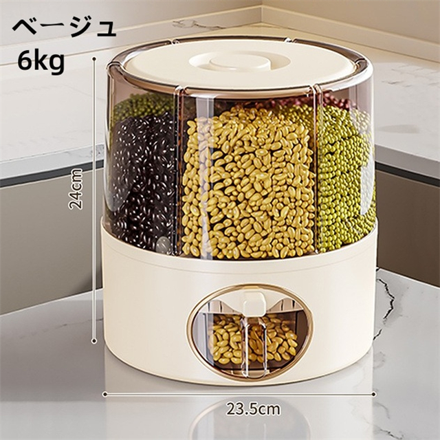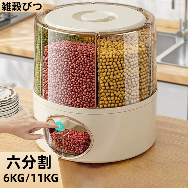 米びつ 雑穀びつ お米収納 五穀収納 収納ボックス 虫よけ 湿気を防ぐ 6kg 11kg お米収納 五穀びつケース 六分割 回転装置 食糧 ちょぞうタンク 家庭用 分割 豆 お茶 ナッツ