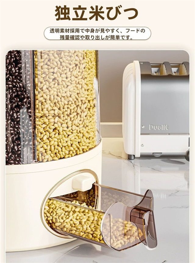 ・箱本体は透明な材質が多く、外部から内部食糧の残量がはっきりと見え、タイムリーな補充が便利で、使用者は頻繁に開けて確認する必要がなく、時間と安心を節約することができる。