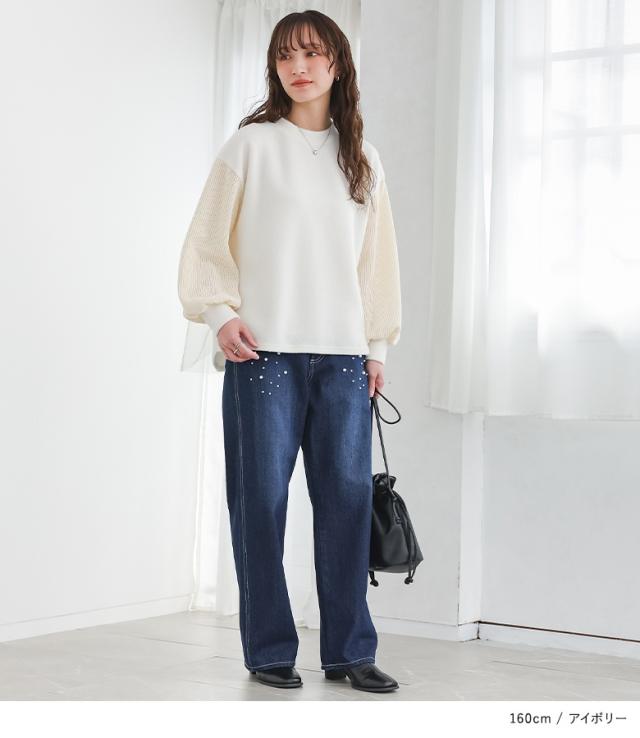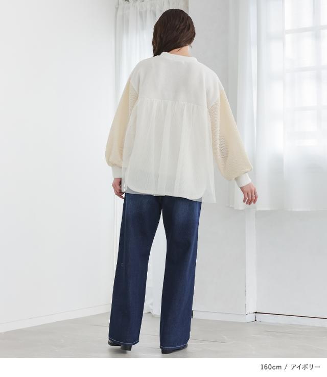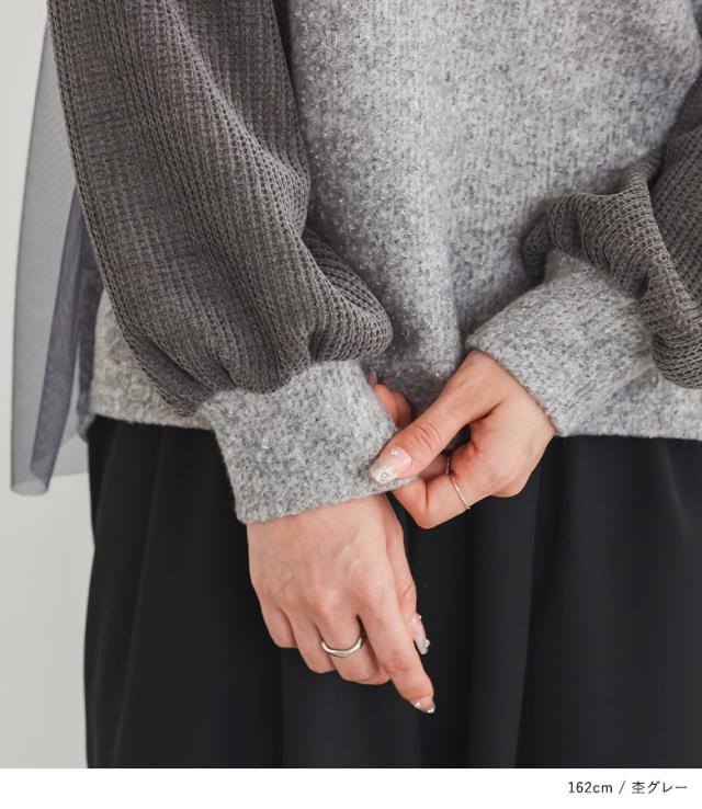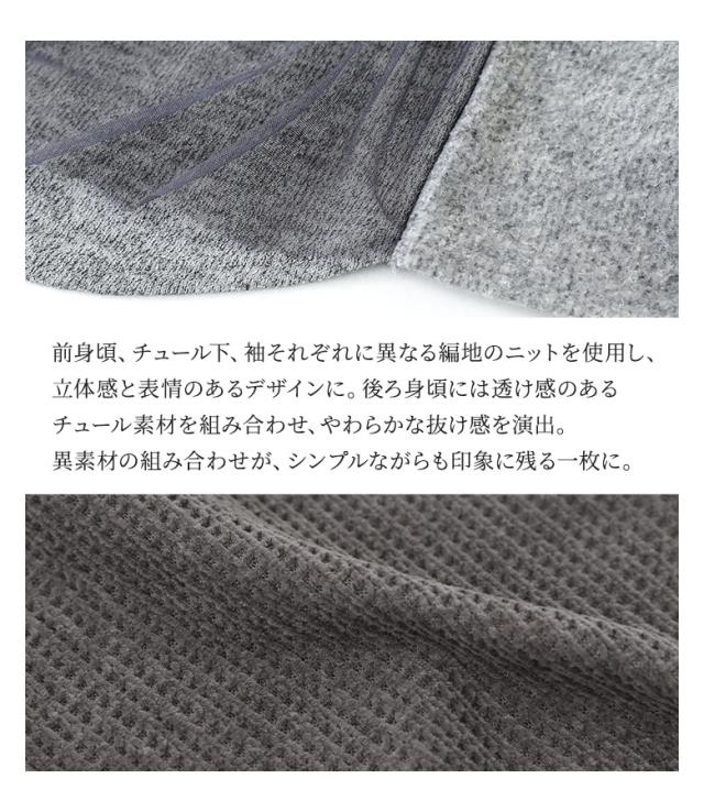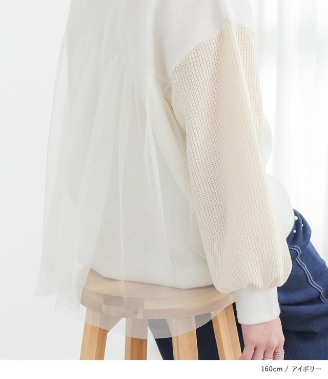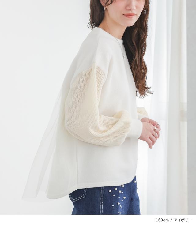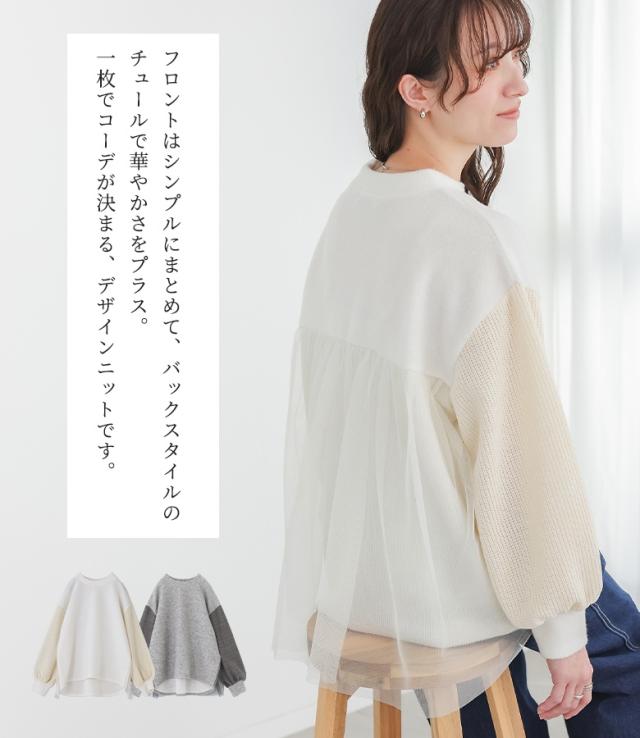 ニット レディース トップス 長袖ニット クルーネック チュール 異素材 配色 バックシャン 春 秋 冬 オシャレウォーカー 【TP】 セーター プルオーバー 袖コンニット Uネック 長袖 パフスリーブ ぽわん袖 袖コンシャス ミディ丈 ミドル丈 ドロップショルダー 後ろ下がり 無地 異素材MIX ドッキング シースルー シアー 透け感 おうちで洗える カジュアル シンプル ナチュラル モード キレカジ フェミニン ガーリー 可愛い系 大人女子 大人可愛い お洒落可愛い 大人カジュアル オフィスカジュアル 上品 きれいめ ベーシック ニュアンス ラフ Sサイズ Mサイズ Lサイズ LLサイズ 3Lサイズ XLサイズ フリーサイズ ぽっちゃり 体型カバー 大きいサイズ プラスサイズ 10代 20代 30代 40代 50代 60代 低身長 高身長 女子会 オフィス 通勤 通学 お買い物 お出掛け 旅行 おしゃれ お洒落 トレンド 流行 osharewalker 白 アイボリー 灰色 杢グレー[ID]11tp03f[バックチュールニットプルオーバー]