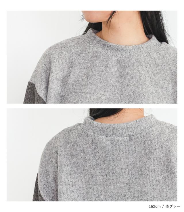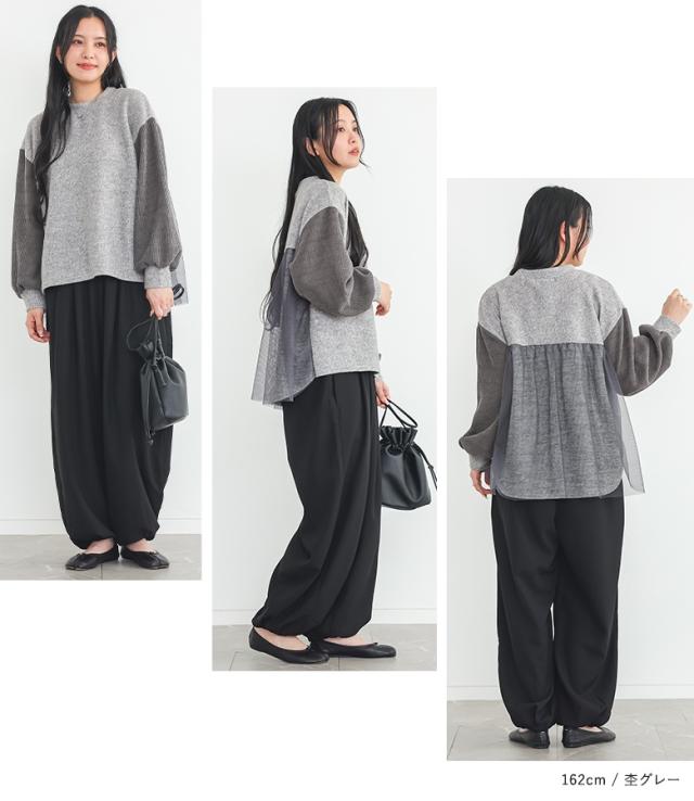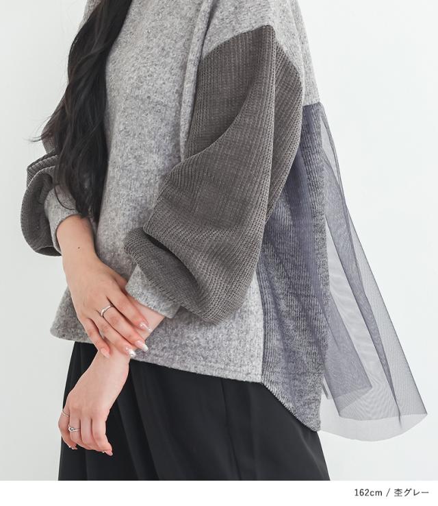 <冬新作>『バックチュールニットプルオーバー』【メール便不可】【20】[ニット レディース トップス 長袖ニット クルーネック チュール 異素材 配色 バックシャン 春 秋 冬 オシャレウォーカー]