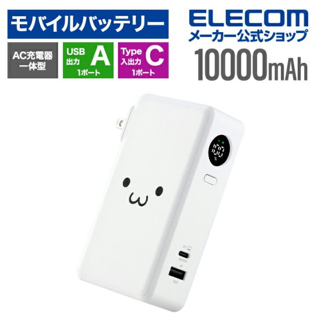 エレコム モバイルバッテリー AC充電器一体 10000mAh 67W C×1+A×1 リチウムイオン電池 AC一体型 USB Power Delivery Type-C入出力 USB-A出力 PSE適合 しろちゃん┃EC-C46LWF