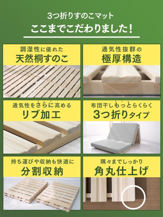 すのこマット すのこ マット 三つ折り すのこ 折りたたみ 分割 連結 桐 天然桐 通気性 除湿 カビ対策 湿気対策 布団干し 室内干し 耐荷重200kg 頑丈 低ホルムアルデヒド 安心 安全 シングル セミシングル ダブル 幅60 幅80 幅90 幅97 幅120 幅140 幅160 ショート 180cm 200cm 床 直置き 布団用 マットレス下 新生活 引っ越し 来客用 敬老の日 母の日 父の日 ギフト 誕生日 プレゼント 誕生日プレゼント 結婚祝い 福袋 メンズ レディース 男性 女性 人気 おすすめ 送料無料