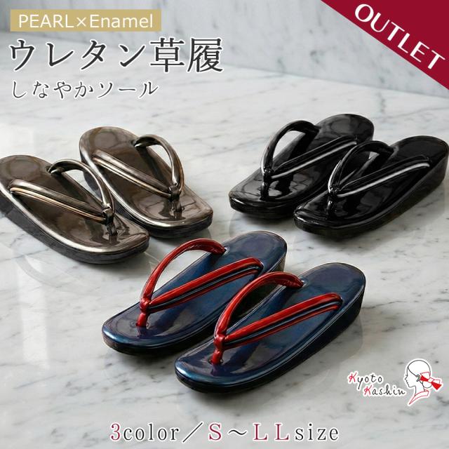 アウトレット ウレタン草履 レディース 痛くない やわらかい 疲れにくい ソフト鼻緒 レザー パール エナメル お洒落 袴 / S M L LL サイズ 小さいサイズ 大きいサイズ 黒 茶 青 / 入学式 卒業式 和装 小紋 雨