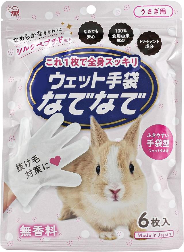 ウェット手袋なでなで うさぎ用6枚入 無香料 日本製 本田洋行