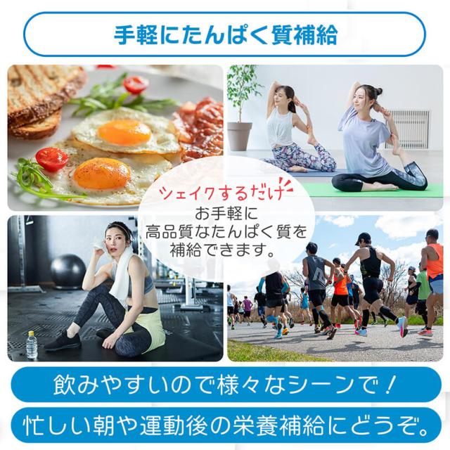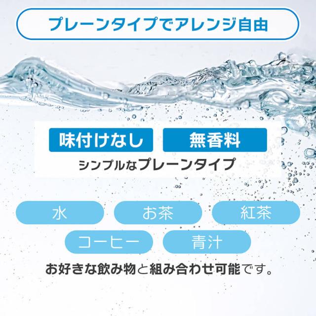 味付けなしのプレーンタイプなので、水やお茶やコーヒー、青汁などにブレンドしやすく、シーンを選ばず手軽にたんぱく質を補給できます。