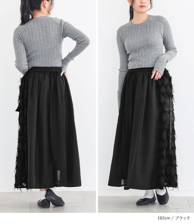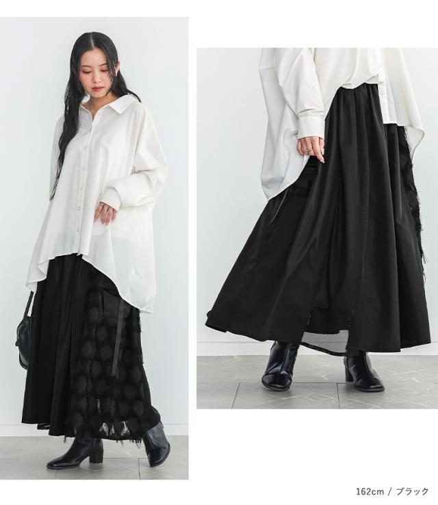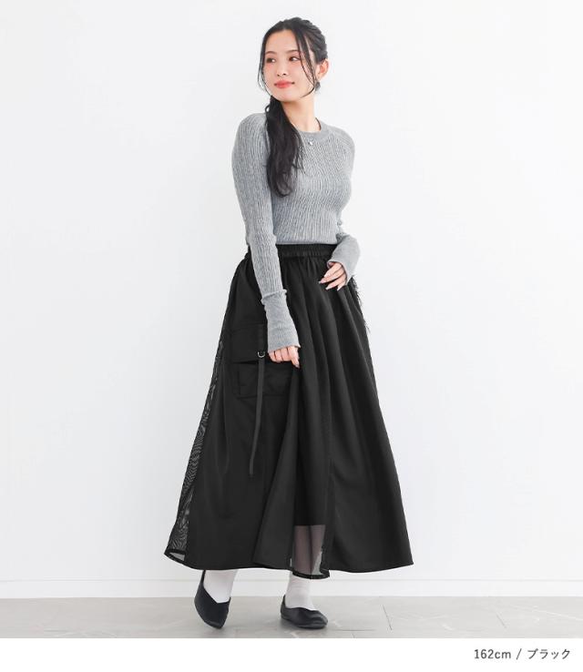ロングスカート レディース ボトムス フレアスカート ロング丈 マキシ丈 異素材 フリンジ メッシュ 春 秋 冬 オシャレウォーカー 【TP】 スカート マキシスカート 個性派スカート フルレングス 10分丈 ウエストゴム 切り替え 無地 異素材MIX 透け感 ポケット おうちで洗える 裏地付き カジュアル シンプル ナチュラル モード キレカジ 可愛い系 大人女子 大人可愛い お洒落可愛い 大人カジュアル オフィスカジュアル 上品 きれいめ ベーシック ニュアンス ラフ Sサイズ Mサイズ 10代 20代 30代 40代 50代 60代 低身長 高身長 女子会 オフィス 通勤 通学 お買い物 お出掛け 旅行 おしゃれ お洒落 トレンド 流行 osharewalker ブラック 黒[ID]11bp046[パターン切替スカート]