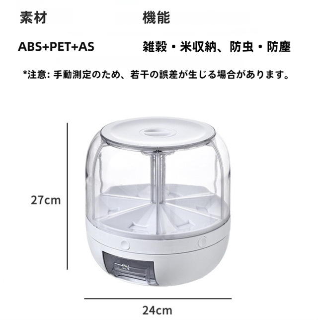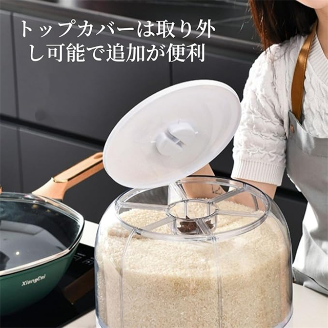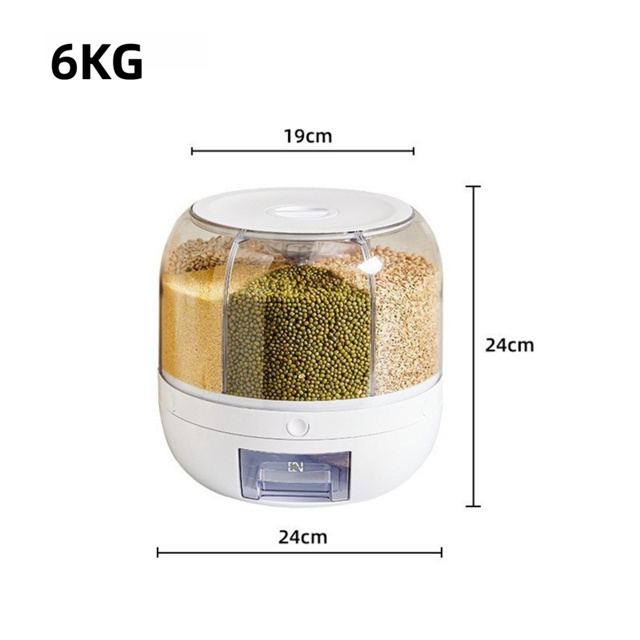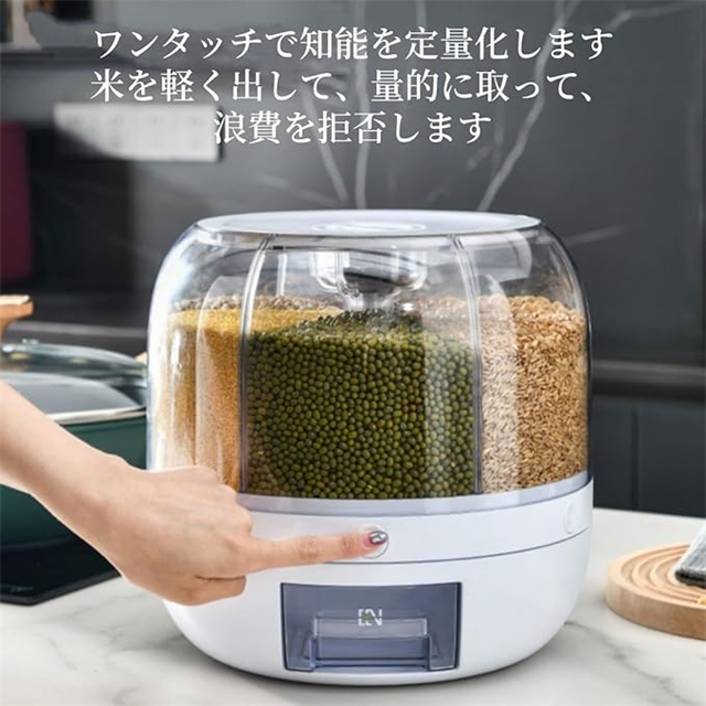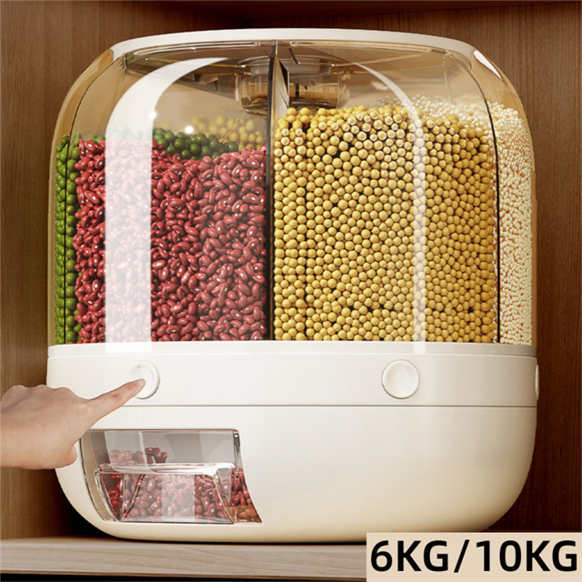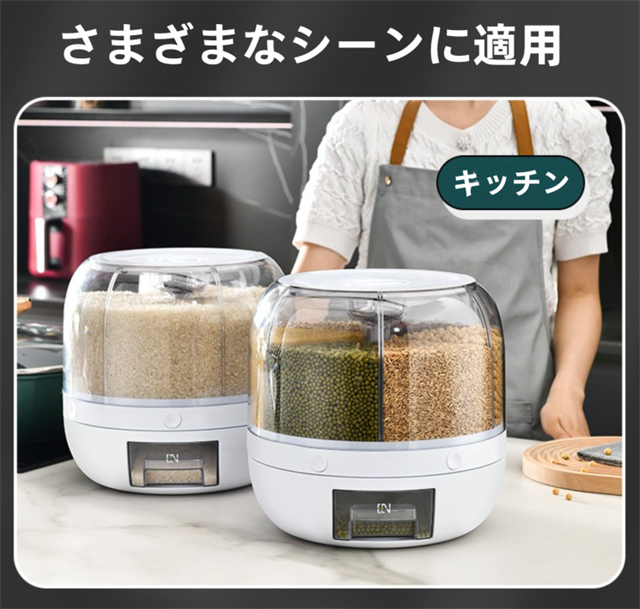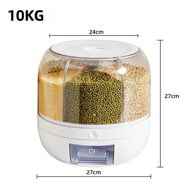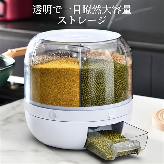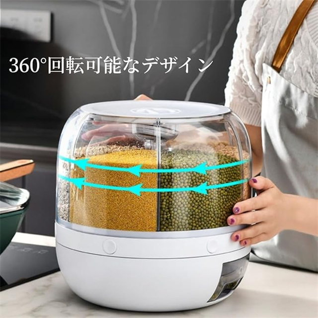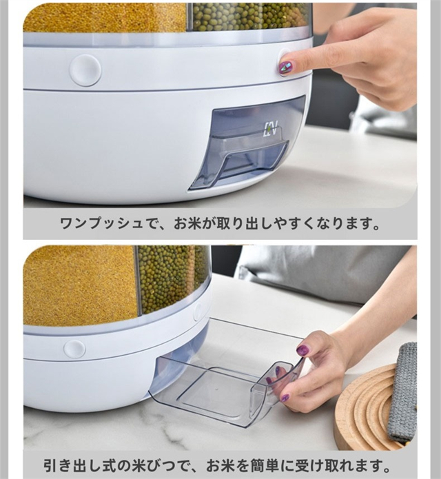 米びつ 雑穀びつ 回転式 プッシュ式 収納ボックス 防虫 湿気を防ぐ 6kg 10kg 六分割 密封 保存 容器 五穀 雑穀 収納 ボックス キッチン 家庭用 大容量 食品 豆 お茶 ナッツ