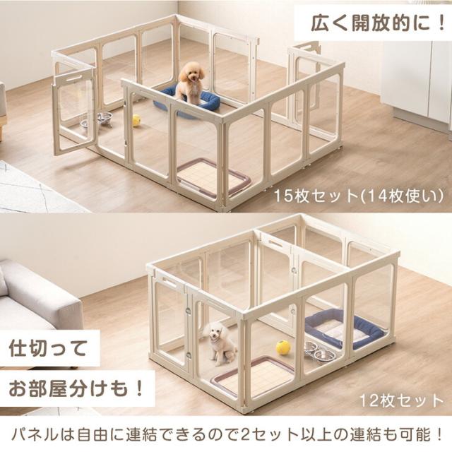【正午〜P5%還元】 愛犬と目が合う クリア ペットサークル 12枚セット 組み替え 2ドア 扉 ドア付き 透明 半透明 サークル ドッグサークル ケージ ペットケージ 犬 犬用 小型犬 中型犬 滑り止め 室内 高さ 60cm 大きい 拡張 仕切り おしゃれ