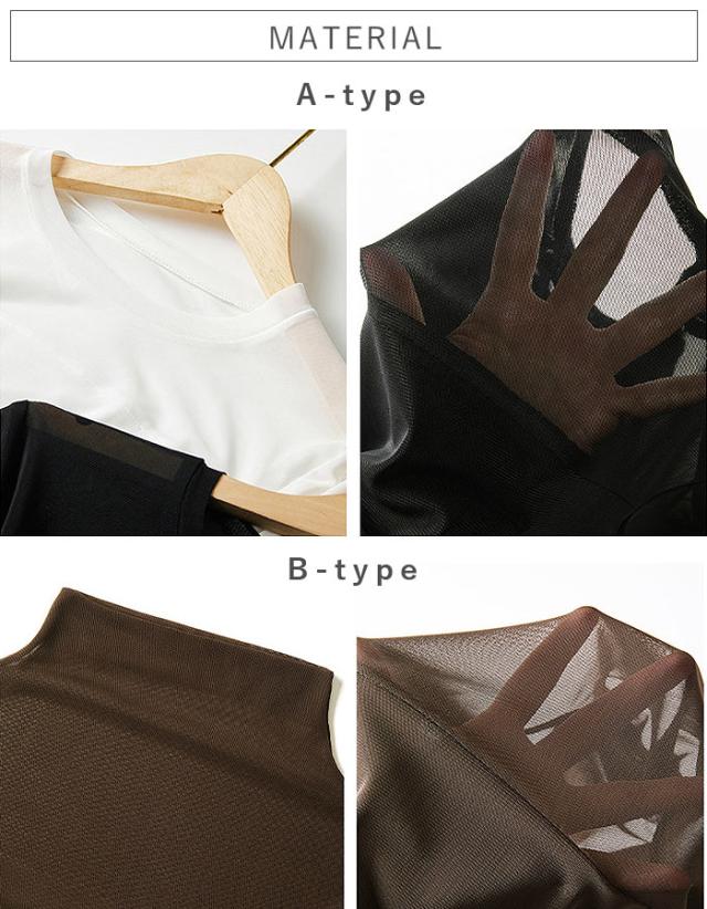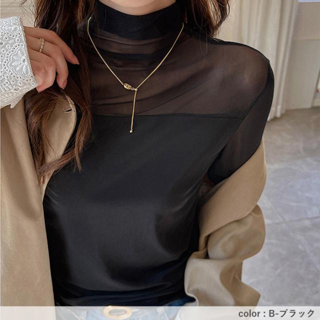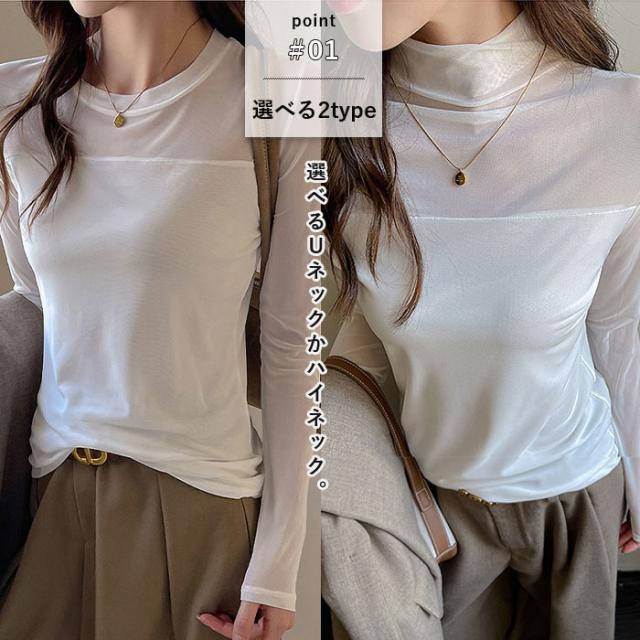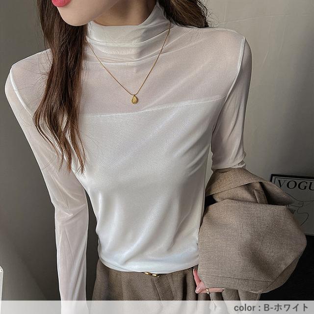 レディース トップス インナー 長袖 メッシュ切り替え レイヤード 重ね着 黒 白 春 夏 秋 おしゃれ かわいい カジュアル[郵1]^t1138^