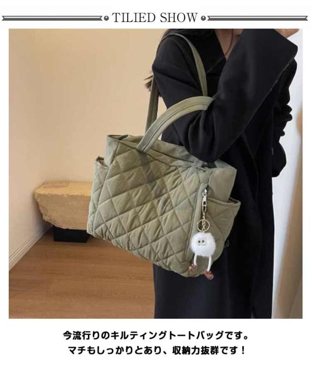 キルティング トートバッグ レディース a4 大きめ ショルダーバッグ ファスナー 大容量 軽量 通勤バッグ お仕事バッグ 通学 エコバッグ ギフト 韓国 収納 シンプル プレゼント