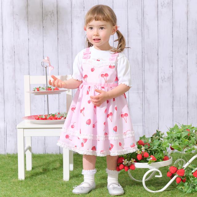 メゾピアノ(mezzo piano)イチゴチェリードット柄ドッキングワンピース&ブルマセット