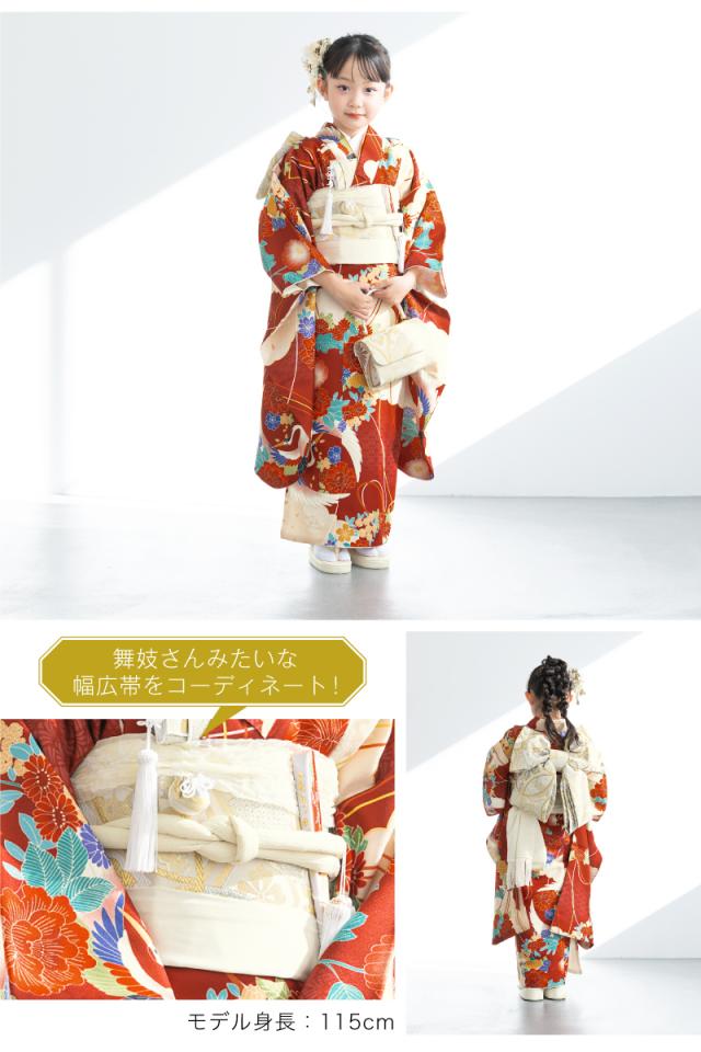七五三 着物セット 11点セット 七歳 七才 女の子 キッズ 子供 販売 子供着物 帯 レッド ホワイト 赤 白 鶴 菊 椿 花柄 おしゃれ かわいい レトロモダン 肩上げ済 floro 創美苑 送料無料