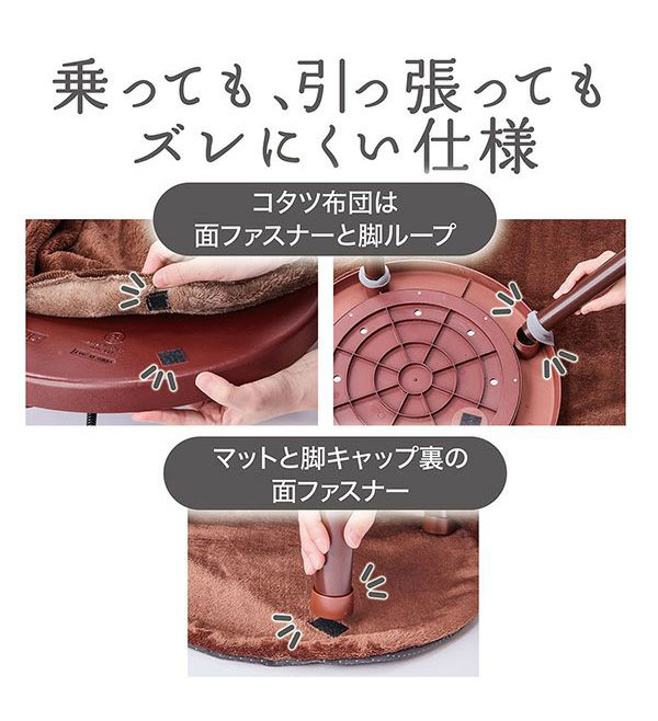 こたつ布団やマットは簡単に外れたりズレたりしにくい仕様。