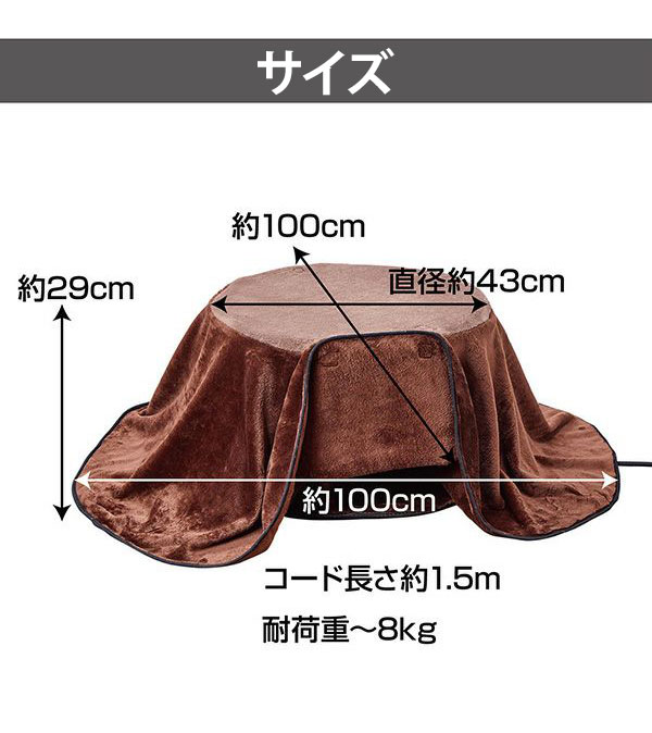 設置サイズ:約幅100×高さ29×奥行100(cm)[こたつ布団・マット有]