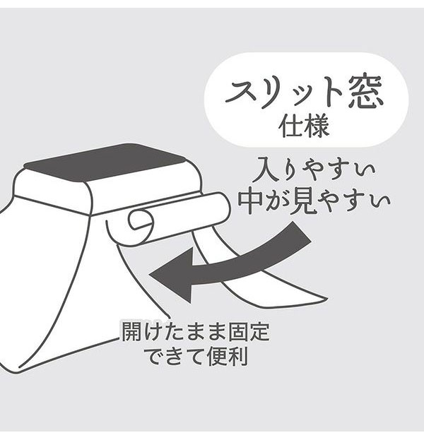 こたつ布団にスリット窓を設けているので中に入りやすく、中の様子確認がしやすい。