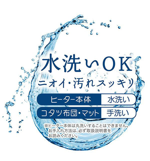 ヒーター本体:ABS樹脂脚:ポリプロピレン・ABS樹脂こたつ布団:ポリエステルマット:表地/ポリエステル、底面/ポリエステル・塩化ビニル樹脂