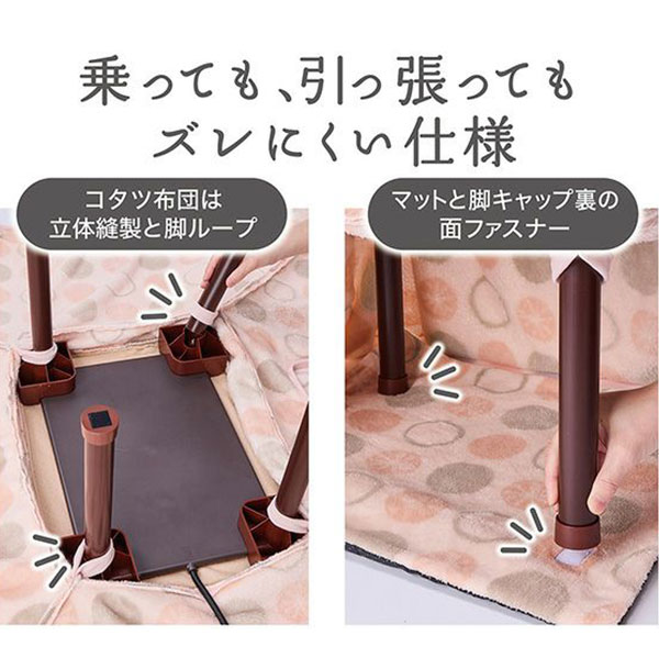 こたつ布団やマットは簡単に外れたりズレたりしにくい仕様。