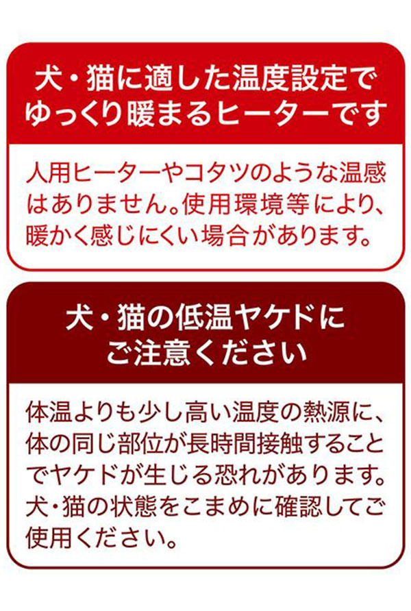 ※犬・猫に適した温度設定でゆっくり暖まるヒーターです。