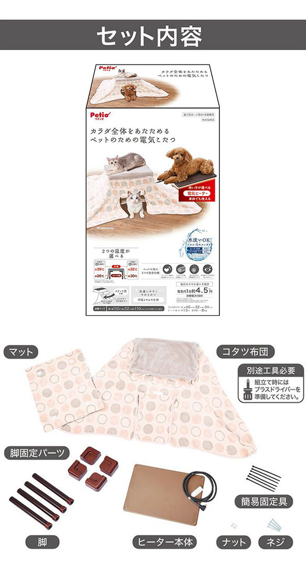 ペティオ 犬猫用 こたつ 電気こたつ カラダ全体をあたためる ペットのための電気こたつ 炬燵 コタツ ヒーター マット 布団 ふとん 洗える 洗濯可 多頭飼い あったか 温か 犬猫兼用 犬 猫 ペット用【送料無料】