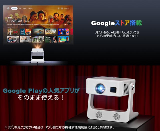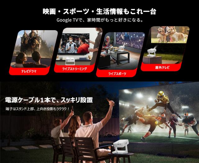【短焦点 Google TV公式認証】プロジェクター 家庭用 1500ANSI-DEGUCHI 天井投影 フルHD1080P 4K対応 HDR10+無感オートフォーカス AIパーソナライズ 自動台形 WiFi6 Bluetooth5.4 30Wサウンド&ノイズ低減 300インチ大画面 アプリ対応 スタンド一体型 密閉防塵設計