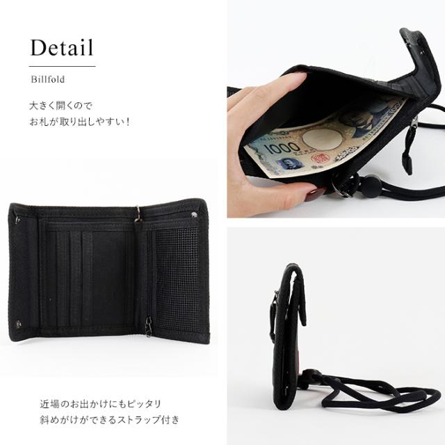 アクティブに使える、頼れる相棒。モバックのストラップ付き2つ折りバリバリ財布