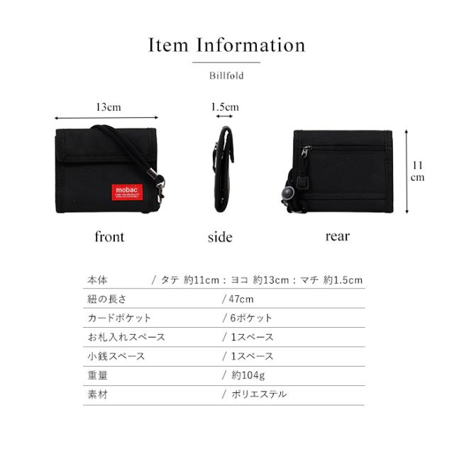 mobac 財布 メンズ 2つ折り ストラップ付き バリバリ財布 ウォレットコード 斜めがけ 首掛け 紐付き おしゃれ ギフト プレゼント 送料無料